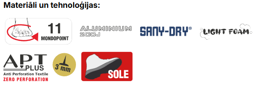 SANY-DRY® odere nodrošina lielisku gaisa un mitruma cirkulāciju. Mīksta un ērta, izņemama poliuretāna zolīte LIGHT FOAM nodrošina valkātājam īpašu komfortu, un dubulti formētā poliuretāna zole nodrošina komfortu ilgstošas valkāšanas laikā.